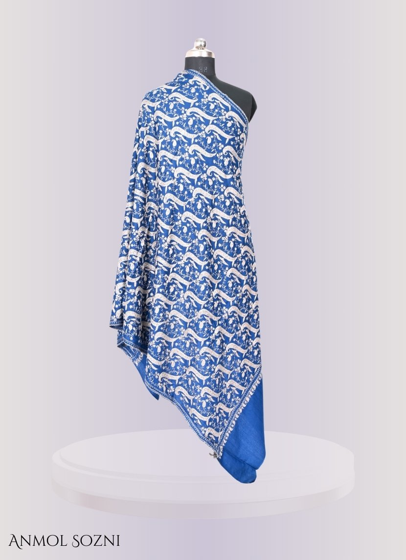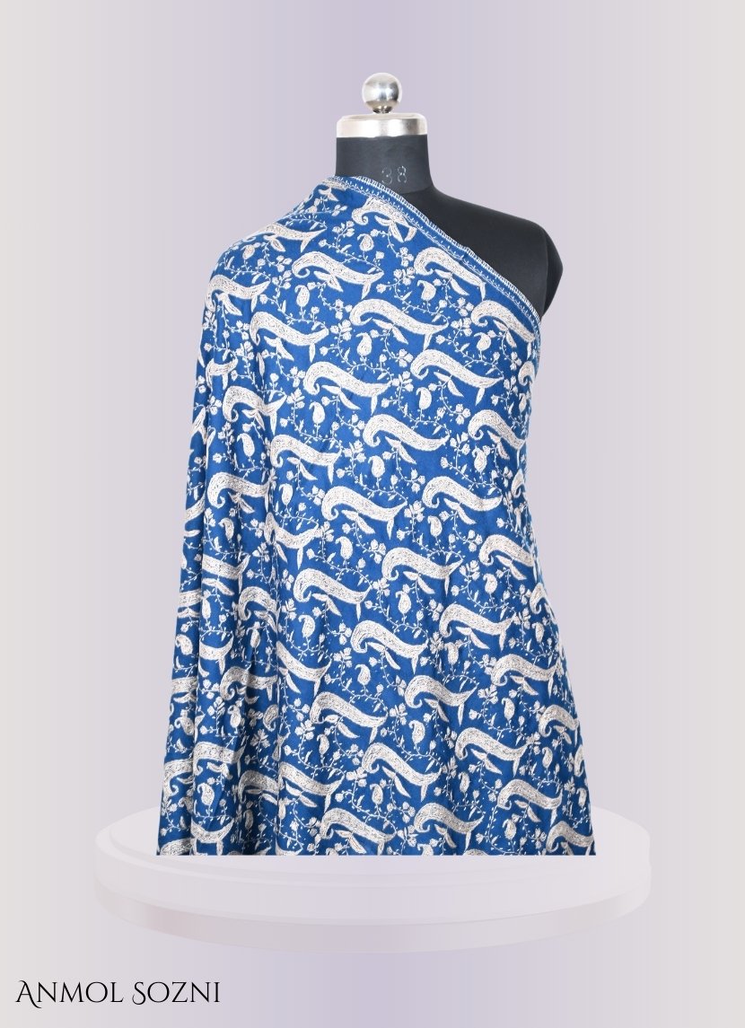 Wrap yourself in the timeless elegance of our Sozni Tosha Shawl, meticulously crafted by skilled artisans from the serene valleys of Kashmir. Each shawl is a masterpiece of traditional Kashmiri needlework, showcasing intricate floral motifs and delicate patterns that epitomize the rich cultural heritage of the region.